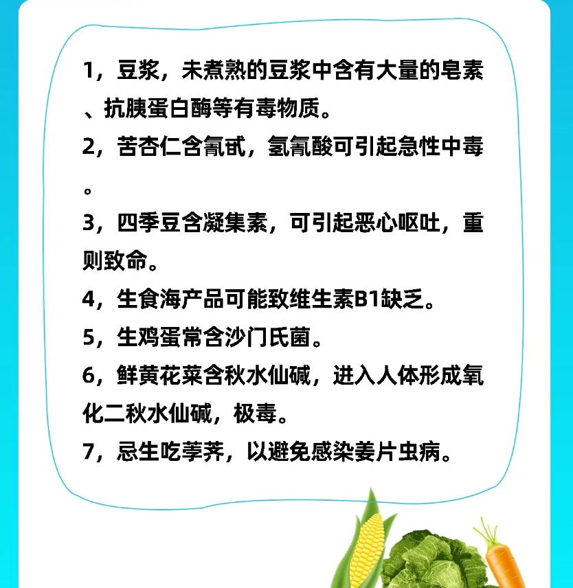 1,豆浆,未煮熟的豆浆中含有大量的皂素、抗胰蛋白酶等有毒物质。