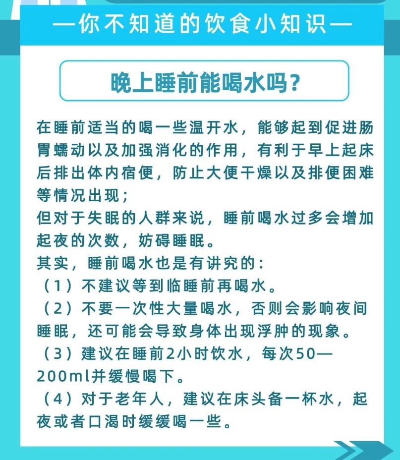 (1)不建议等到临睡前再喝水。