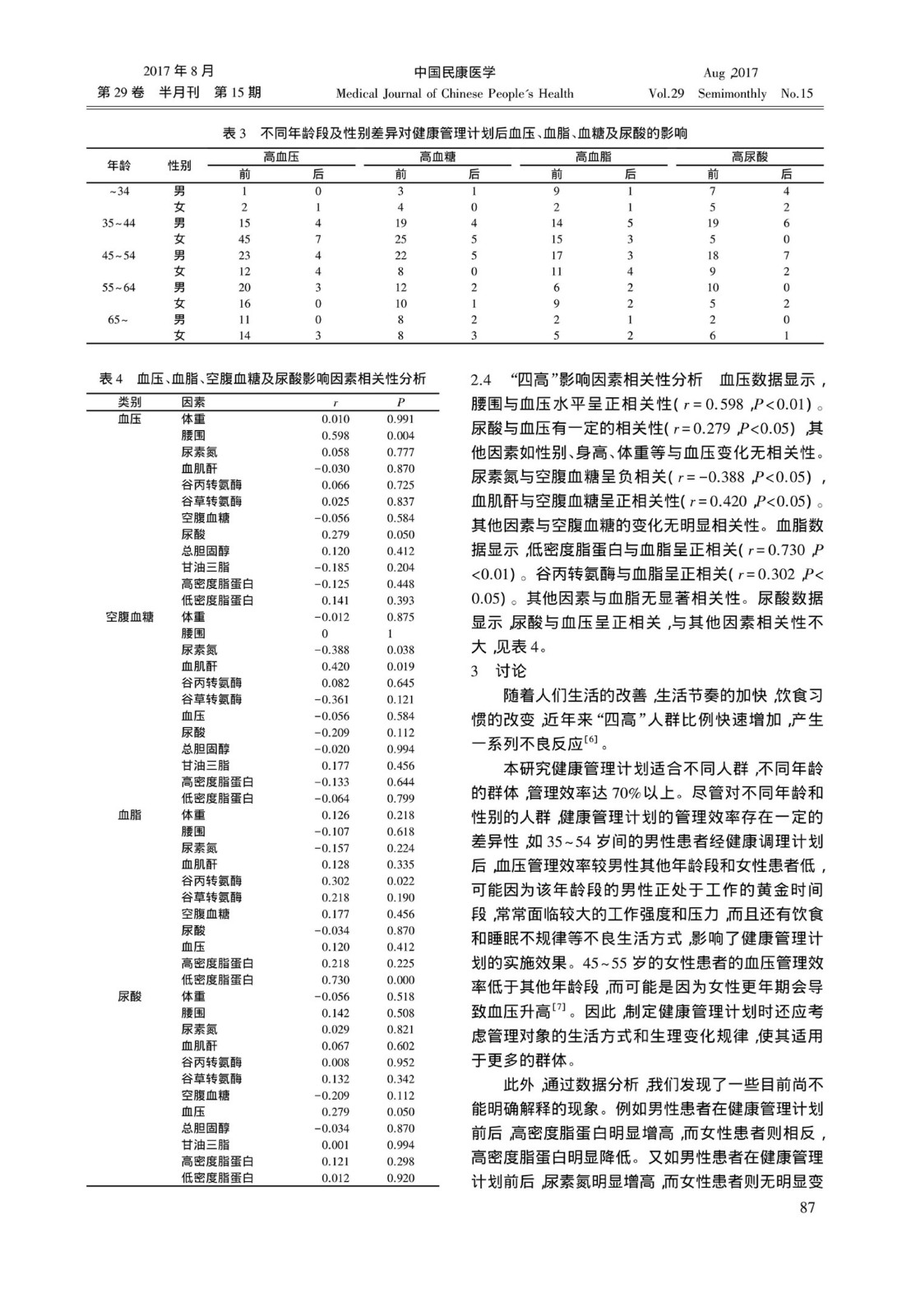 四高人群的影响研究
