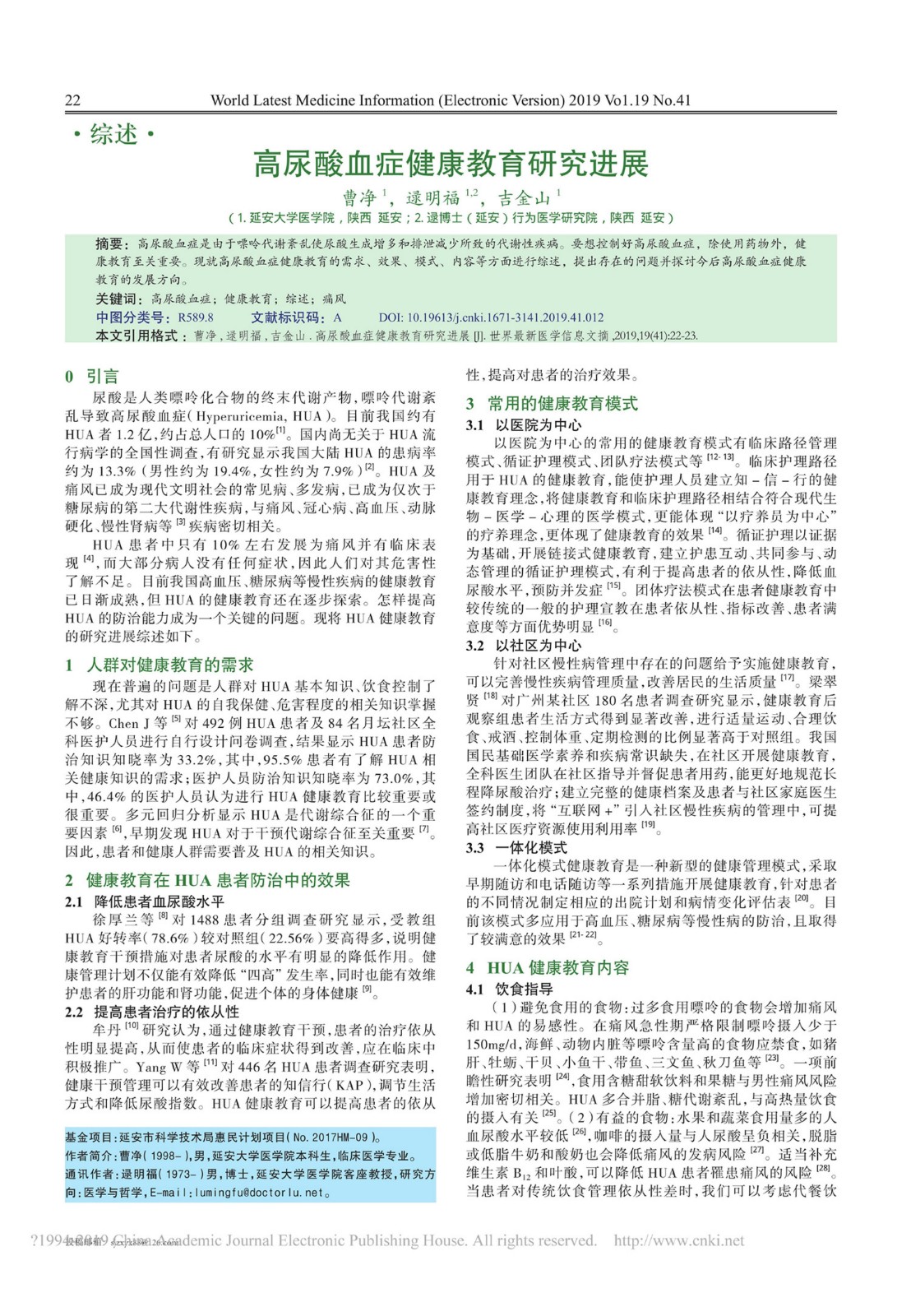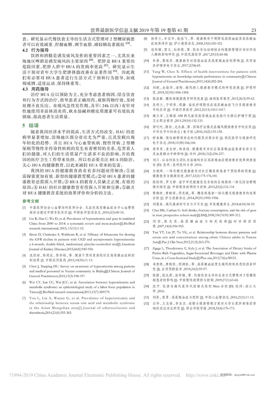 高尿酸血症健康教育研究进展