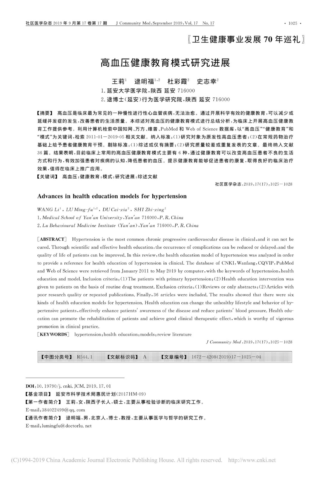 高血压健康教育模式研究进展