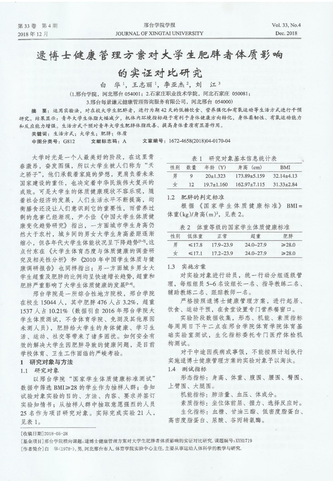 逯博士健康管理方案对大学生肥胖者体质影响的实证对比研究