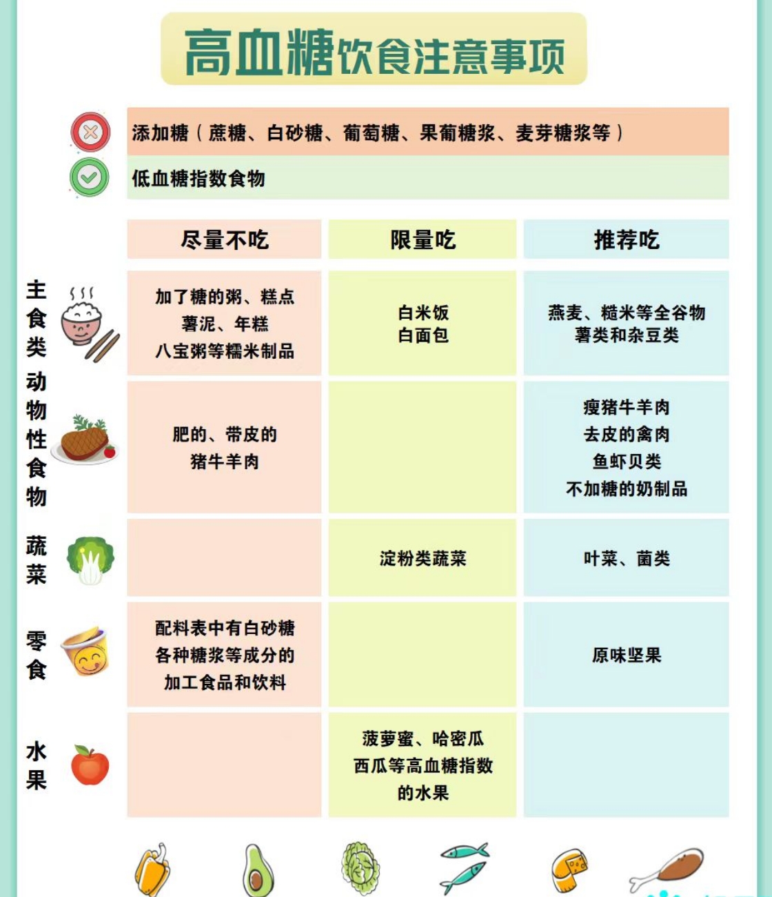 不吃添加糖(蔗糖、白砂糖、葡萄糖、果葡糖浆、麦芽糖浆等),选择低血糖指数食物