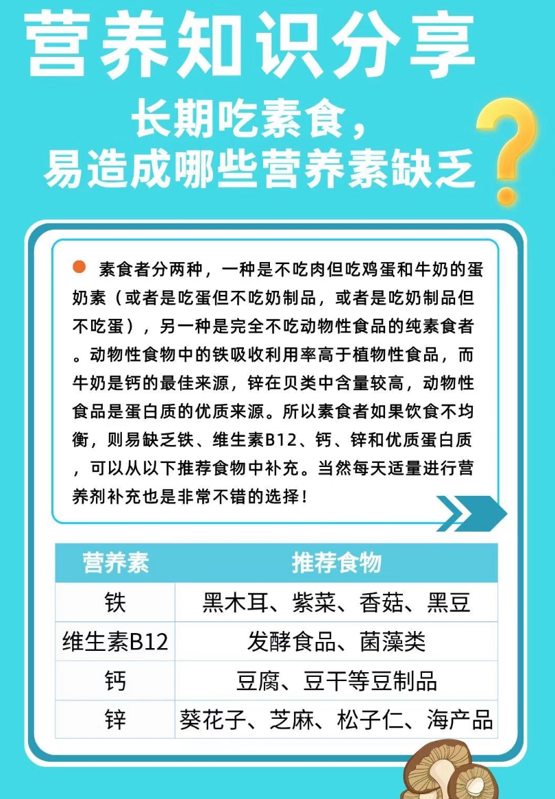 衡,则易缺乏铁、维生素B12、钙、锌和优质蛋白质,可以从以下推荐食物中补充。当然每天适量进行营养剂补充也是非常不错的选择!