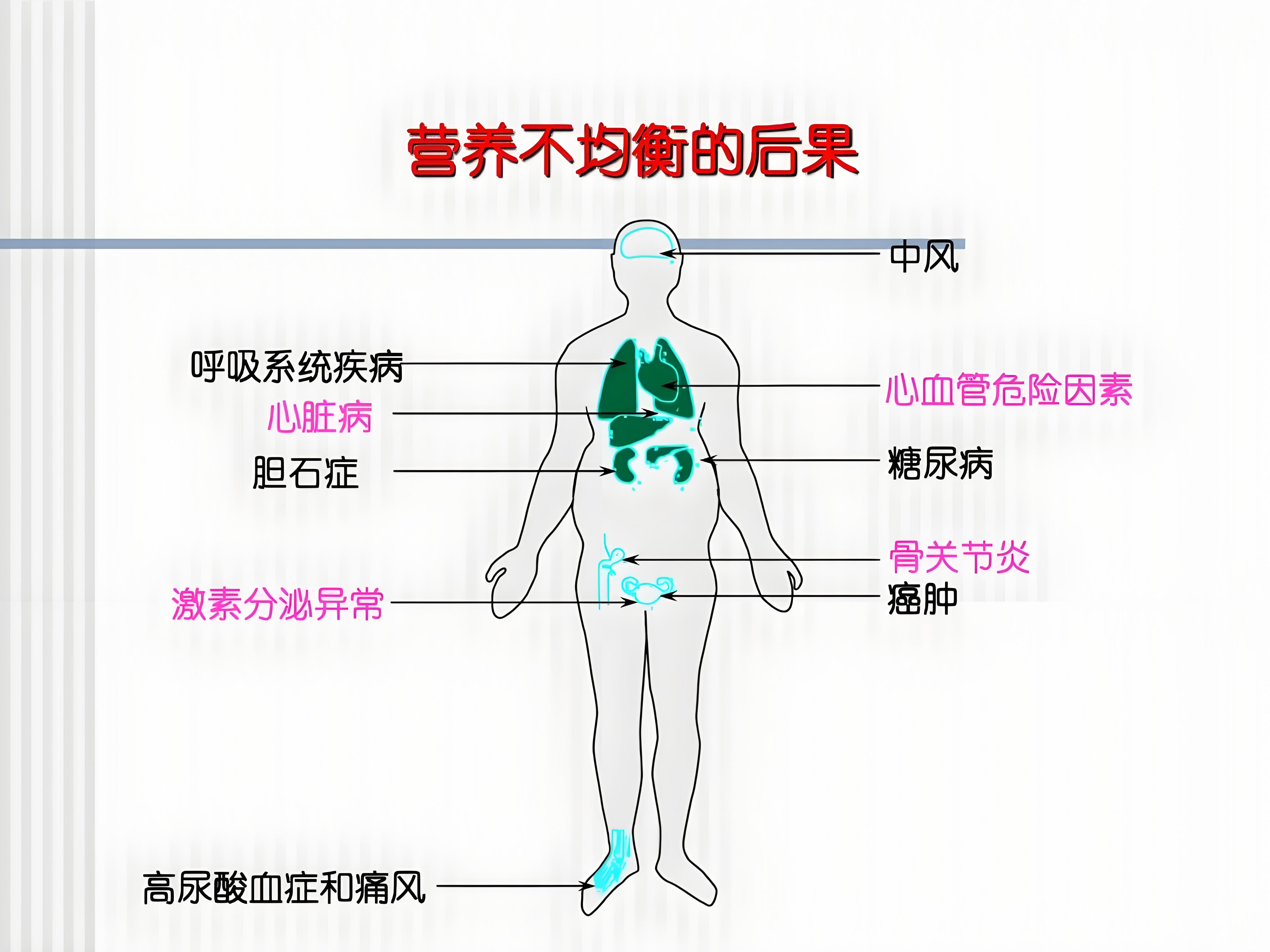 04饮食结构单一化:现代人饮食习惯的单一化现象日益严重,偏爱某一类食物或过度依赖某一营养来源,导致营养摄入失衡。这种不均衡的饮食习惯不仅影响个体的健康状态,还可能加剧某些慢性疾病的发病率。(提倡多样化饮食,确保各种营养素的均衡摄入)